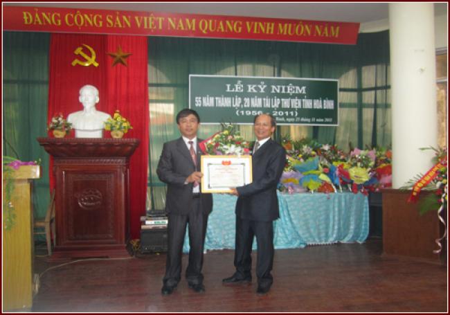 Sáng 25/11/2011, Thư viện tỉnh Hòa Bình tổ chức Lễ kỷ niệm 55 năm thành lập (1956-2011) và 20 năm tái lập (1991-2011).