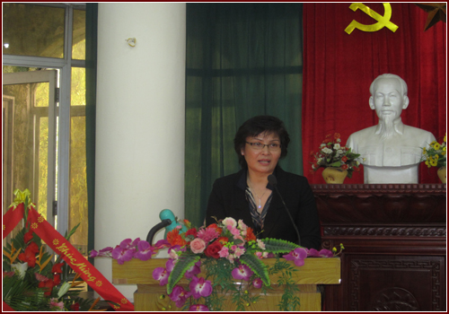 Bà Phan Kim Dung – Giám đốc Thư viện Quốc gia Việt Nam phát biểu tại buổi lễ