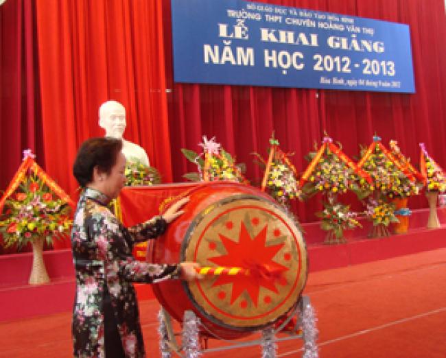 Phó Chủ tịch nước Nguyễn Thị Doan đánh trống khai giảng năm học 2012 - 2013